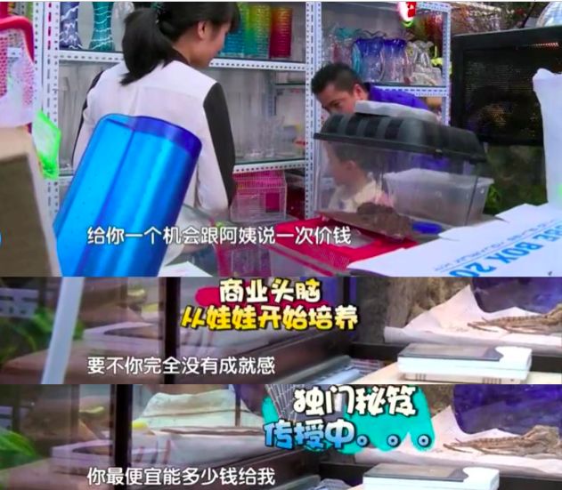 华谊兄弟总裁王中磊,在《爸爸回来了》锻炼儿子小威廉购买食材,并教他 “讨价还价”。