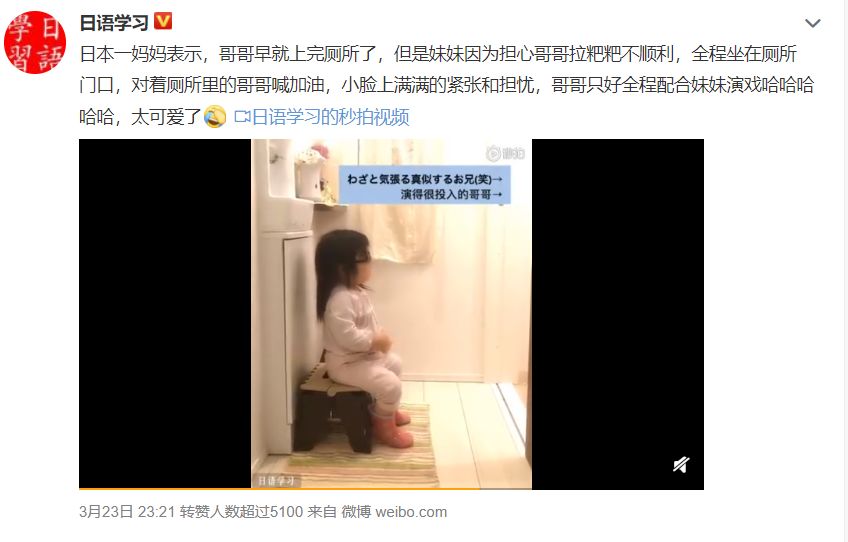 本文标题:日本一小萝莉担心哥哥拉粑粑不顺利,全程坐在厕所门口给哥哥加油!:http://www.wy668.com.cn/yuerdq/352107.html