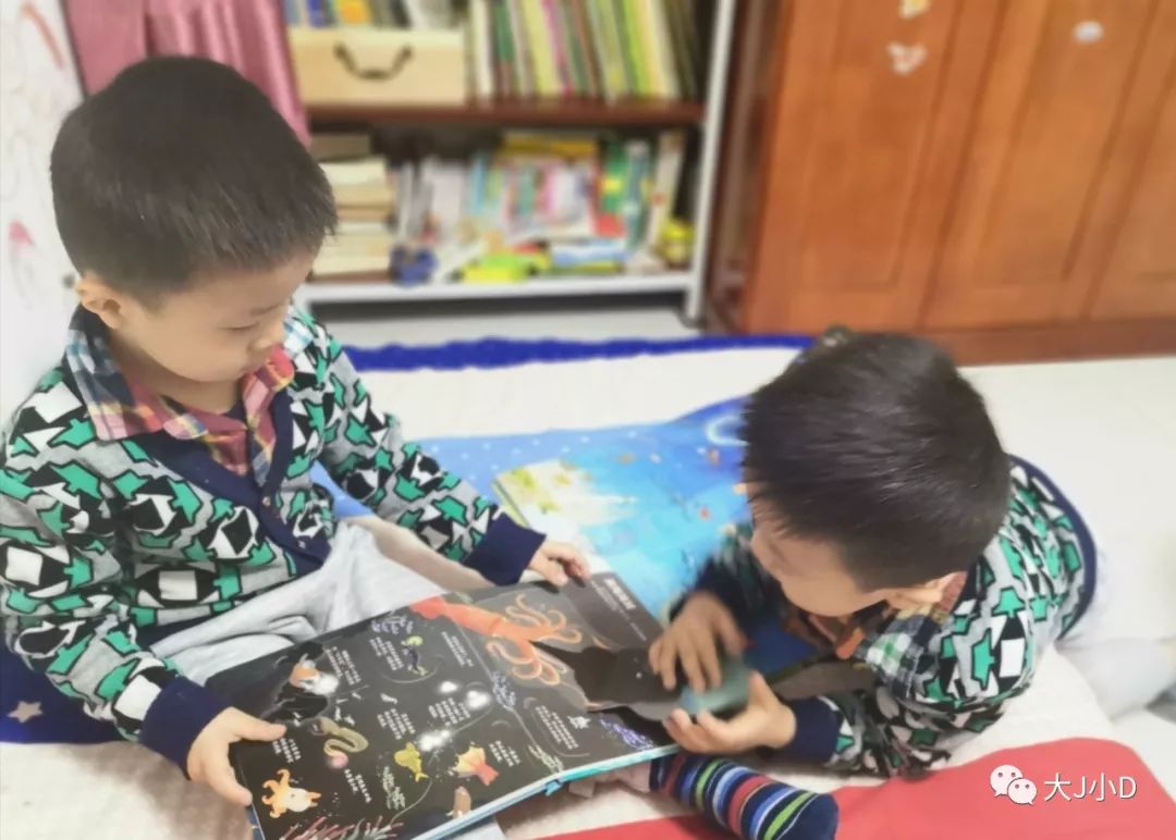 现在孩子们每天一没事儿就拿本书自己翻看,睡前阅读最少是1个半小时。我们在阅读中扩展很多种方式,对话表演,情景演绎,提问互动等。
