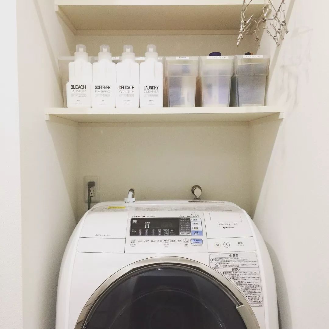 洗护用品放在置物架上,要洗衣服的时候随手就能拿到~