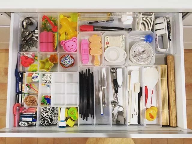 rumi喜欢用不同大小和形状收纳盒来整理物品,一打开抽屉,所有东西就能一目了然~