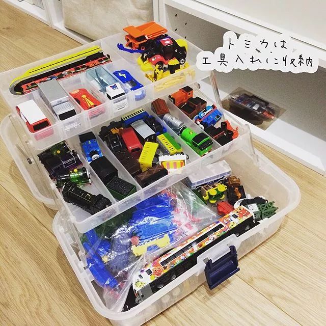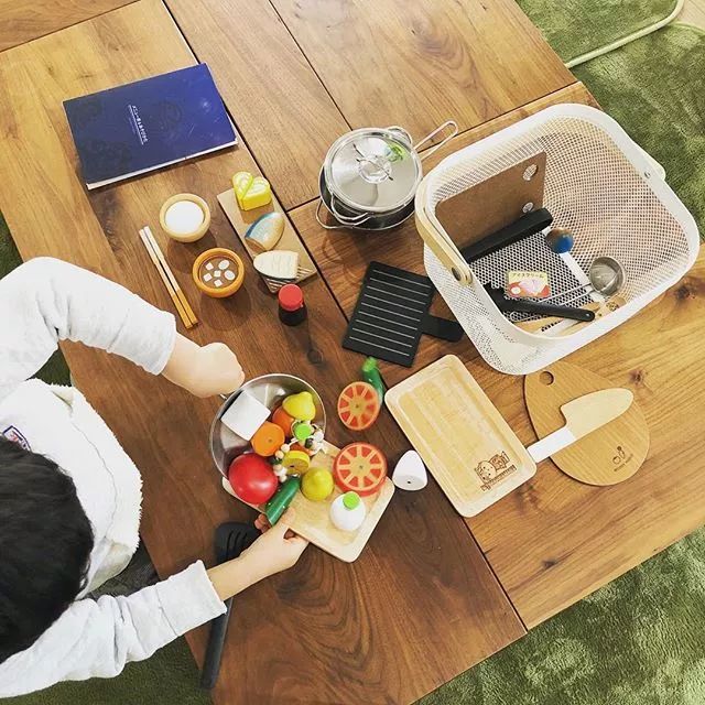所以每次玩完玩具,rumi就会陪着孩子一起整理,让他们养成用完就放回原位的好习惯。