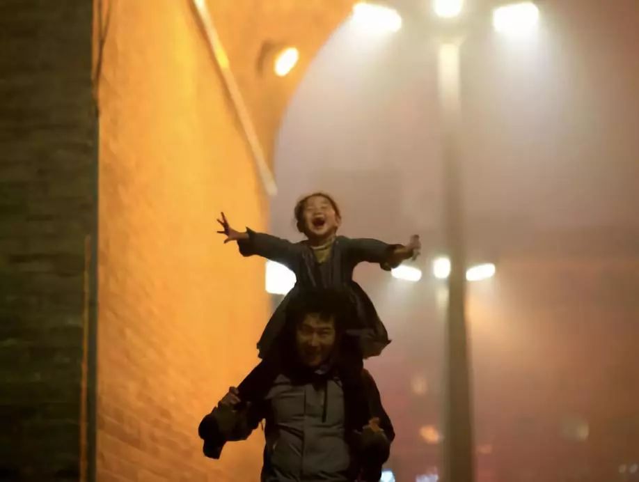 爸爸驮着诺诺,行走在西安的城楼下,灯火昏黄,感受十三朝古都的浅浅遗韵。