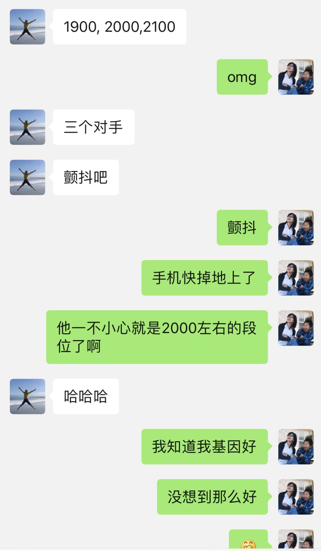 原谅这对“得意忘形”的激动爸妈,要知道,逃逃目前的积分才1600+,能赢比他高出几百积分的对手非常不容易,即便有运气的成分,但能连赢3局,说明棋艺还是“狠狠地”长进了一大截的!
