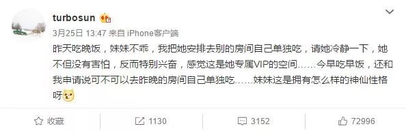 在等等四岁、妹妹一岁多的时候。每次只要哥哥想吃妹妹的“婴儿食品”,即使是婴儿米粉、稍大一点的磨牙棒,只要他想吃,孙俪都让哥哥随便吃。