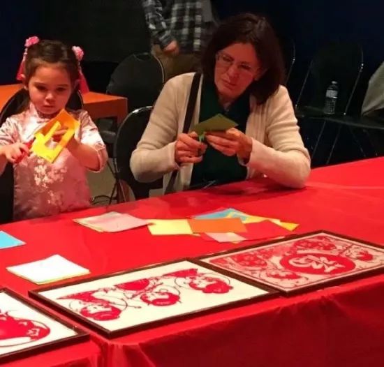 ▲2018年中国春节,婆婆和我女儿在华盛顿史密斯森亚洲文化馆学习中国春节文化-四川绵竹年画和剪纸