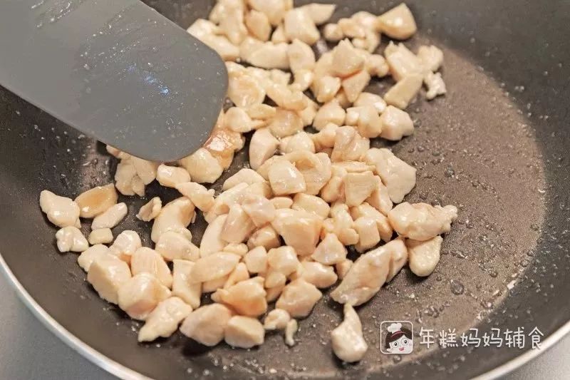 小提示:根据宝宝的咀嚼能力,鸡肉丁可以切的小一些哦。