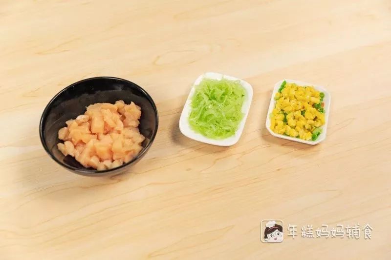 我们用的是袋装的什锦玉米粒,这样营养会更丰富。当然用新鲜的玉米棒剥一下粒也可以的呢。