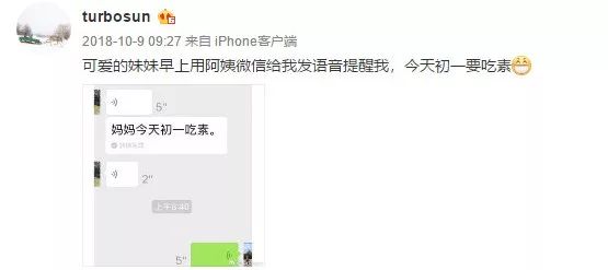 小小的人儿,还记得妈妈的生活习惯,贴心的给妈妈发微信,提醒妈妈记得要吃素。