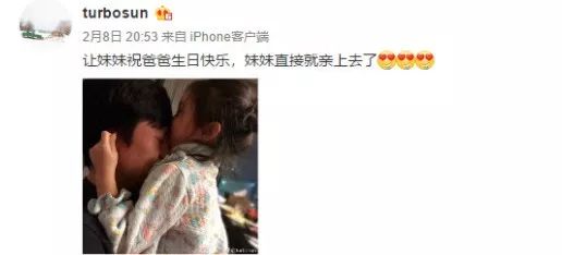 给爸爸庆祝生日,小花妹妹直接就亲上去了。