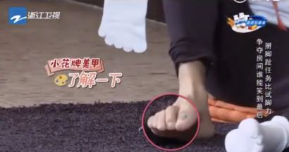强行被涂上指甲油,上节目时指甲还没有清洗干净。