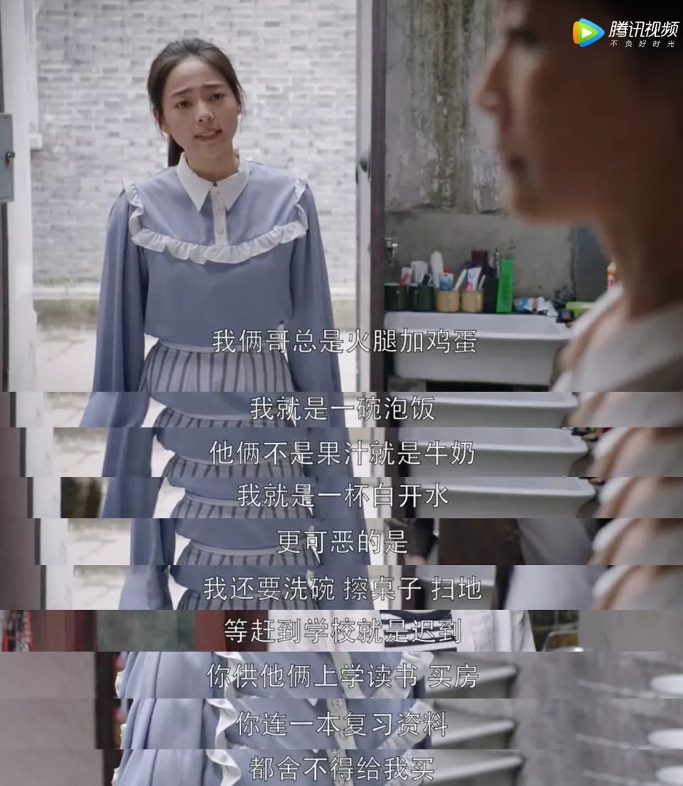 从小到大,女儿和两个儿子的吃食都天差地别,两个哥哥有鸡蛋火腿吃,有牛奶喝,而她却只有泡饭和白开水。