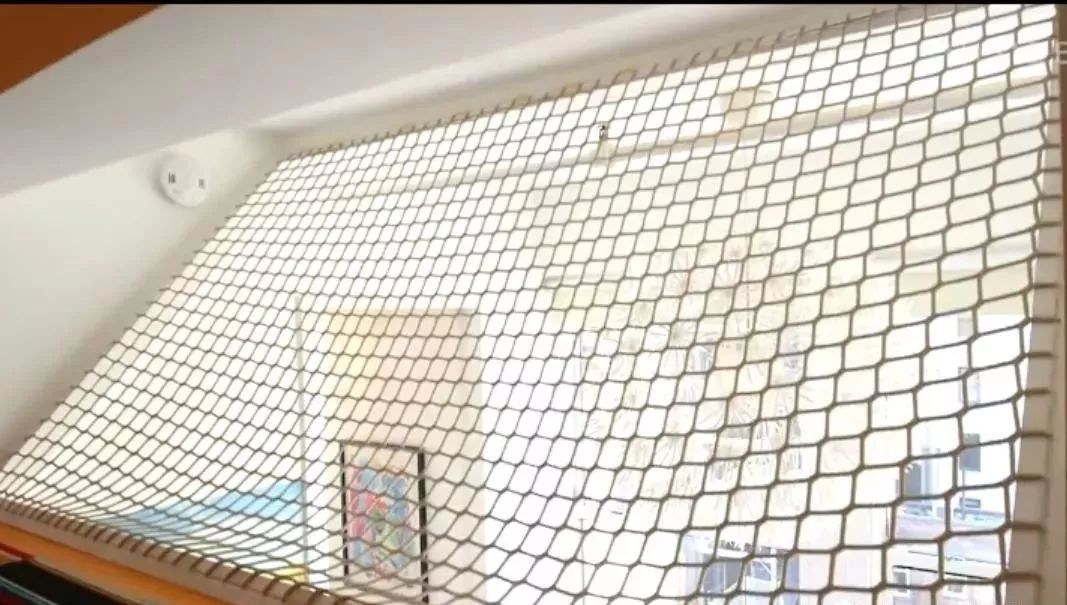 Alex房间的楼梯虽然就是常规的爬梯的样子,但在他房间的上方有一张斜拉的网: