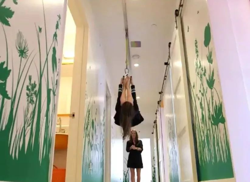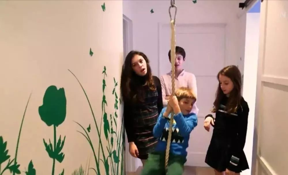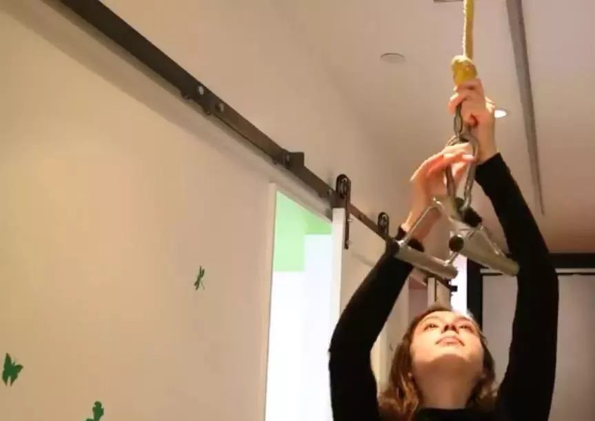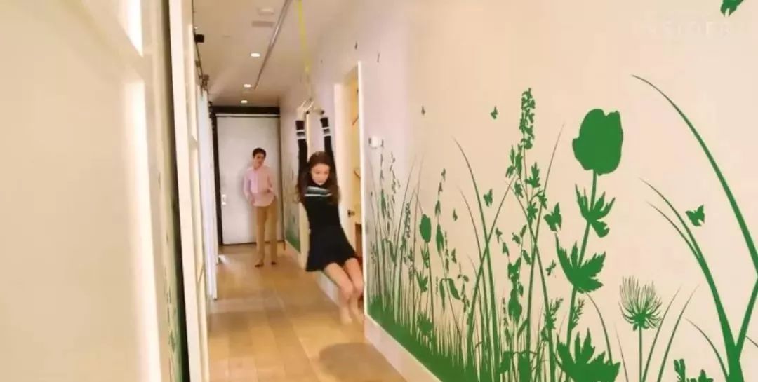 不为别的,就为了孩子们可以从走廊这头拉着吊索滑到另外一头,好玩!