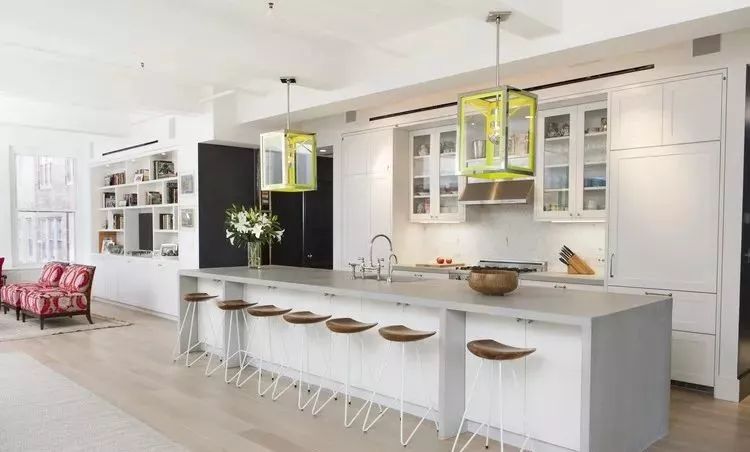 为了让一家五口能够在这个客厅里自在地生活,设计师还做了一个很长的餐桌。