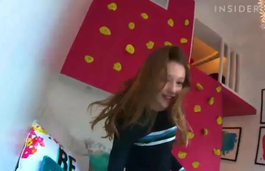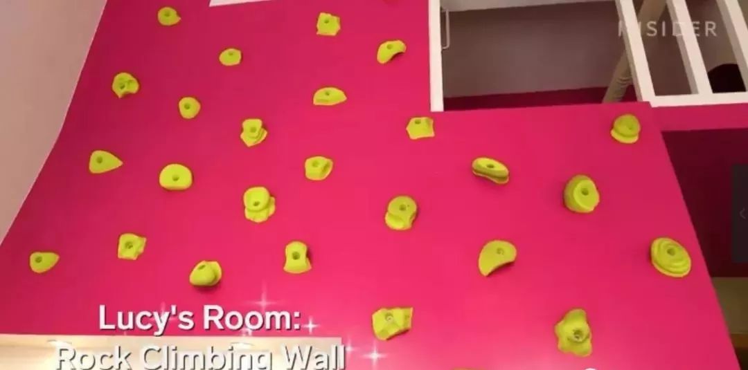 妹妹Lucy是个活力少女,喜欢爬上爬下,她的房间的“楼梯”就设计成了攀岩的墙壁。