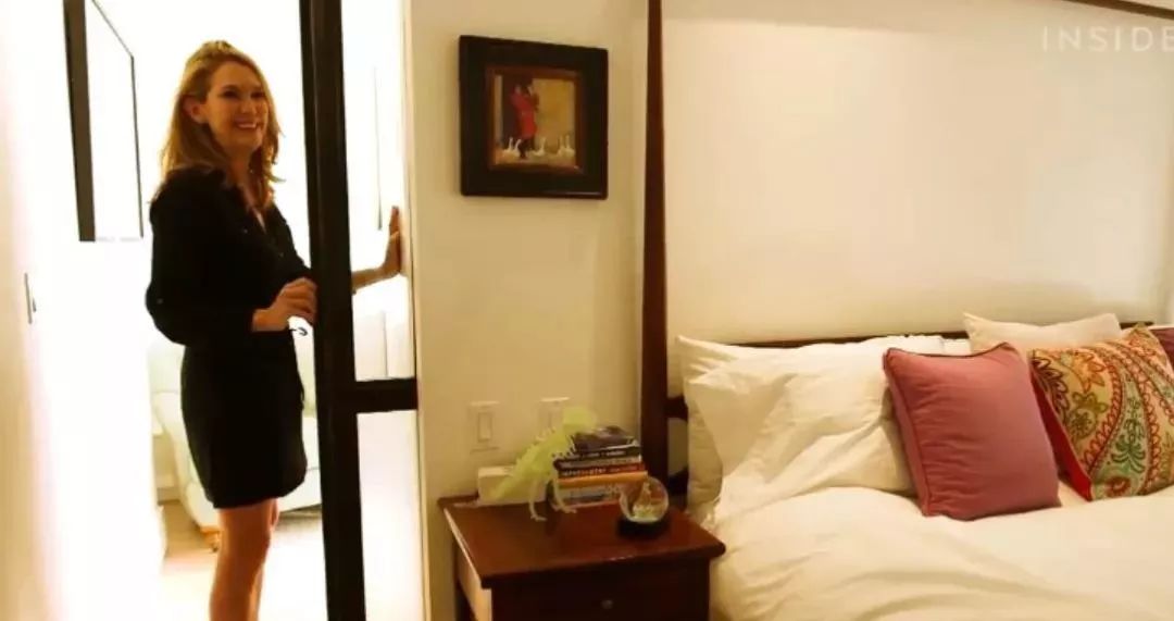关上卧室床两侧的小门,这个书房就完全和外界隔绝开了,是一个完全属于Beth的“小天地”: