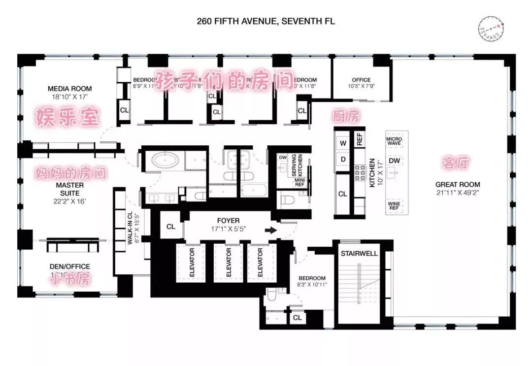 Beth买下的房子是位于第五大道260号的一个平层公寓,为了让自己和孩子们都能在这样的繁华地段有自己的小天地,这个平层公寓被改成一套五居室。
