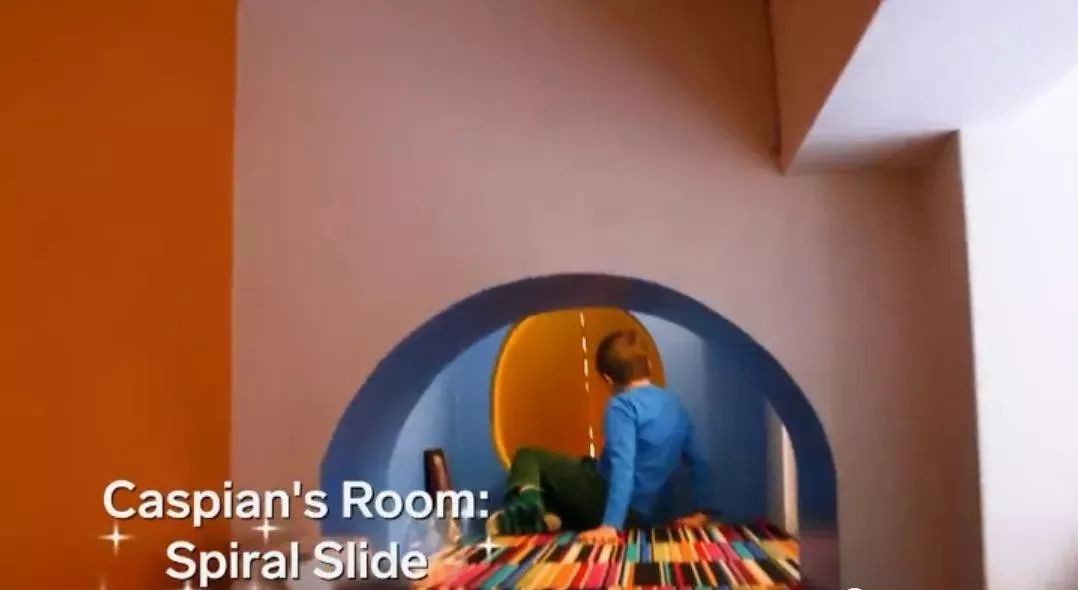 孩子们随着这个旋转滑梯,就能来到他们的娱乐室了。