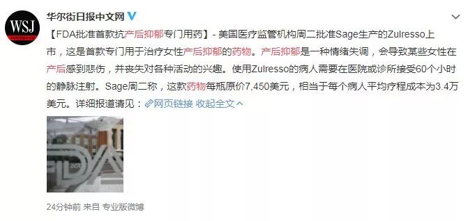 根据网易新闻的报道,这个药名为“别孕烯醇酮(brexanolone)”,将以 Zulresso 作为商品名上市。(为了叙述方便,以下还是称“该药”。)其中有很多专家和受试者的采访,小编总结了一些关于该药的特性: