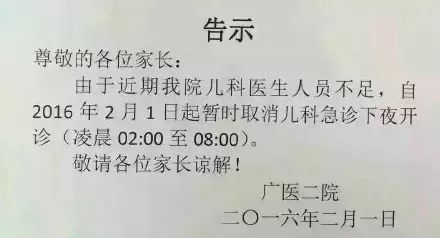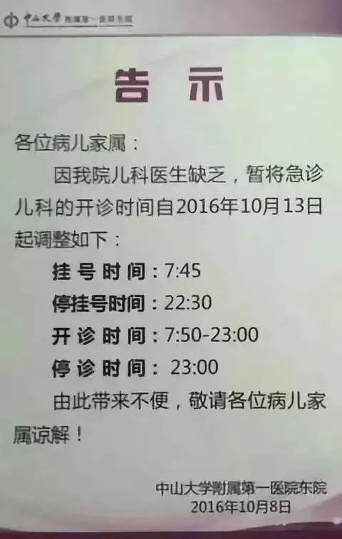 早在2016年的时候,就频频曝出,由于儿科医生紧缺,医院被迫取消儿科急诊夜诊。