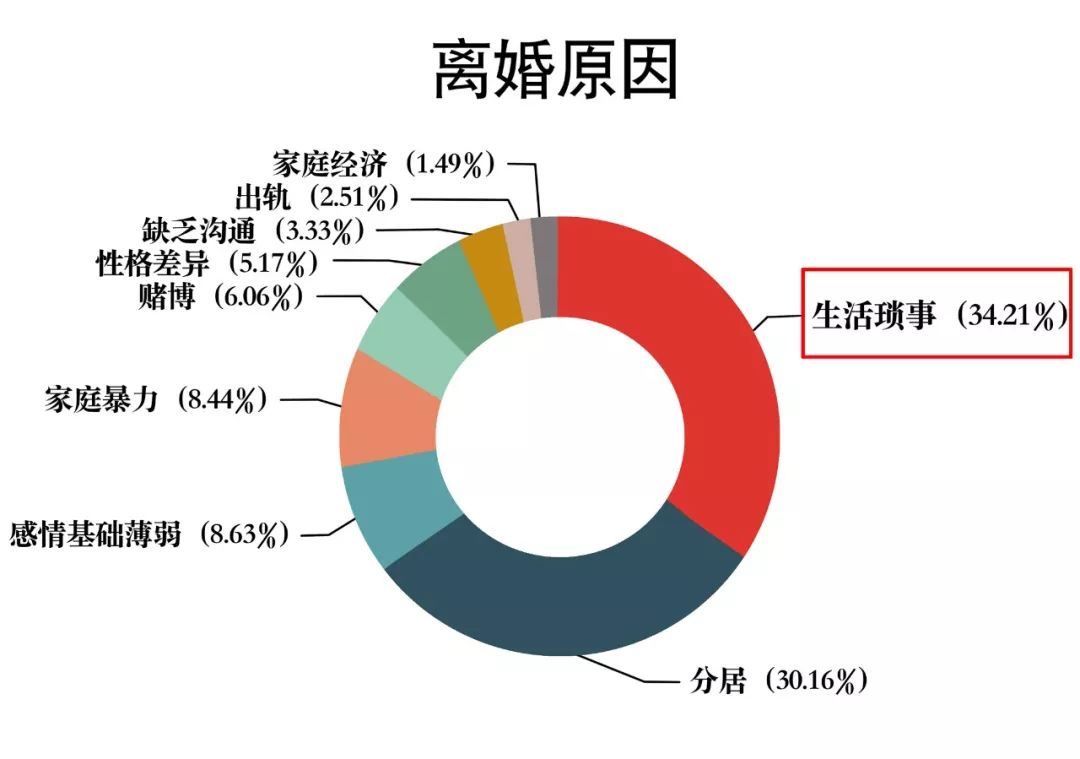 在近5万(49804)件离婚案中,竟然有34.21%是因“生活琐事”导致。