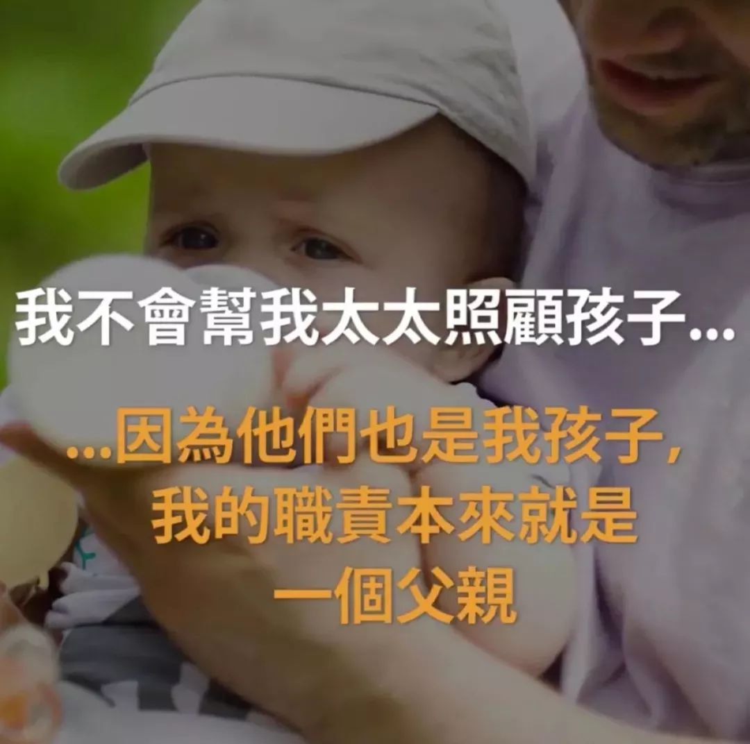 我不是帮我太太照顾孩子,因为他们也是我的孩子,我的职责本来就是一个父亲。