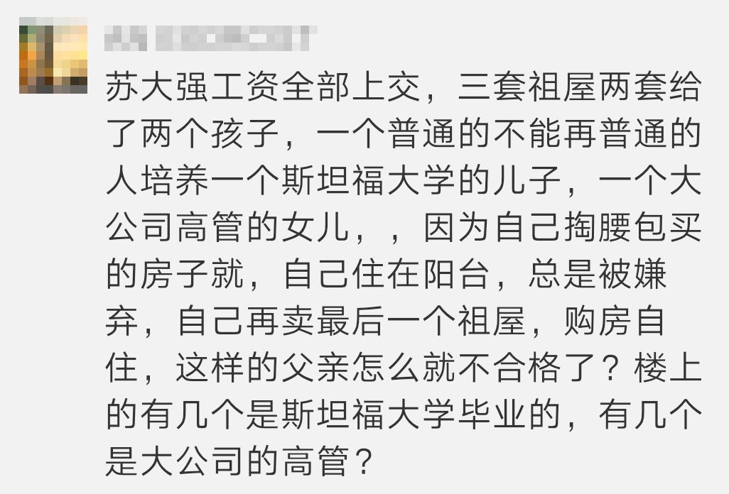 好大学、好工作……孩子们都有了世俗意义上的成功,而且苏家二老完全是奉献自己、成全孩子的精神,你们怎么还能说他们不合格?