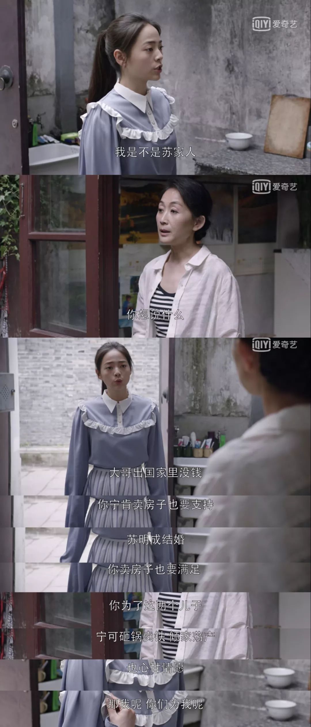 后来我们就看到了,苏母去世后,苏家突然失去了主心骨。对这个家里的三个男人来说,生活乱套了。