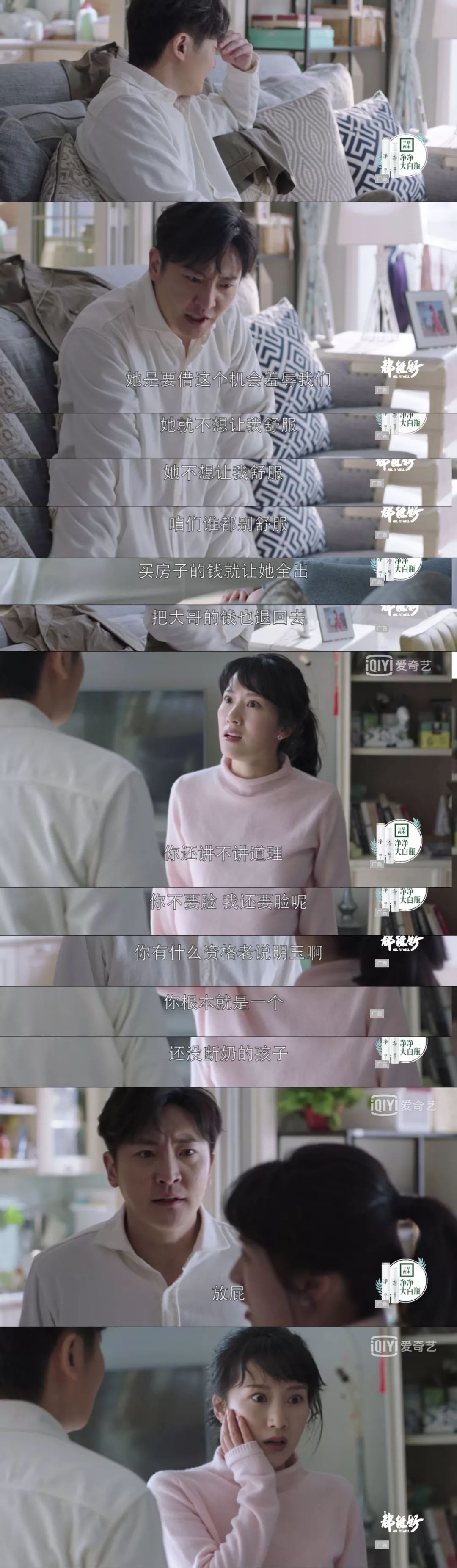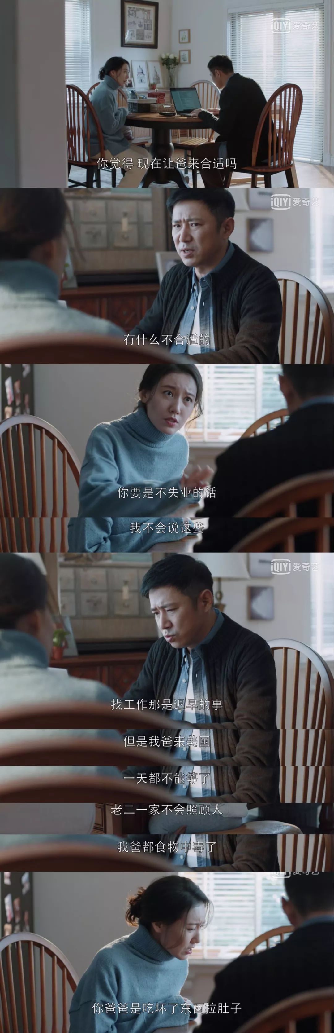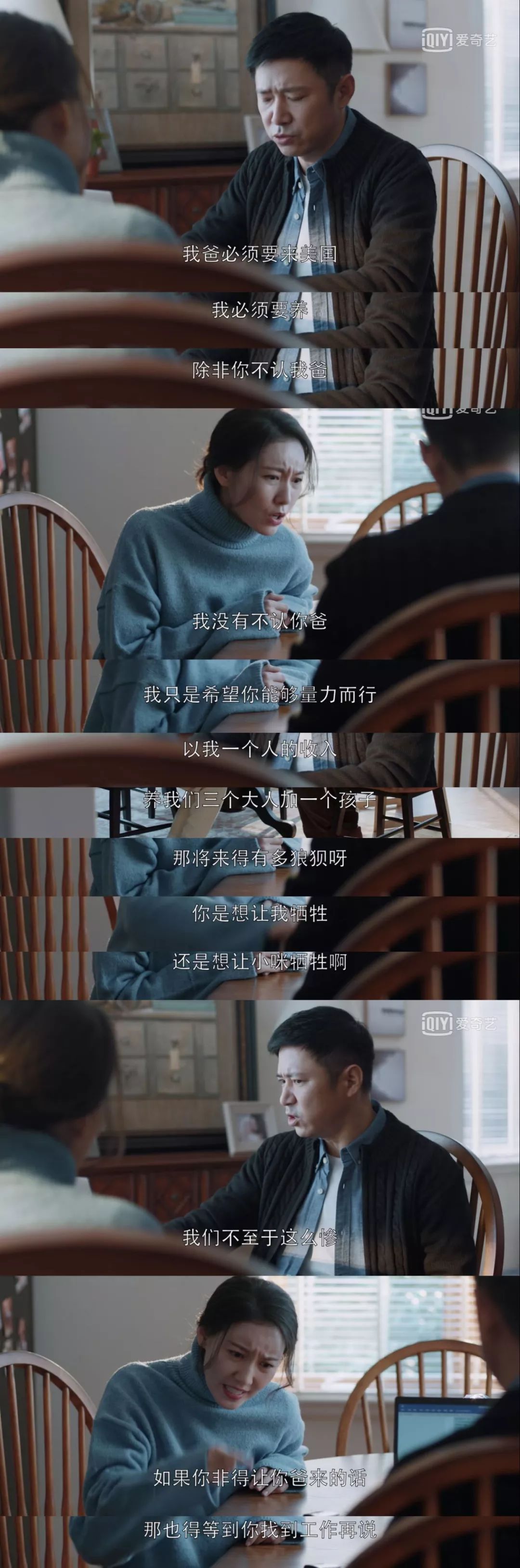 后来他在美国失业,又死要面子不肯告诉家里人,冒着牺牲妻子、女儿生活保障的风险,要把在国内作天作地的苏大强接去,惹得小家庭都不安分。