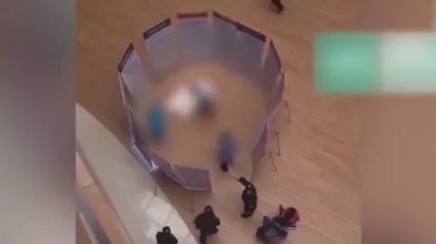 2018年8月9日,湖北一个3岁的小男孩自己在3楼扶手电梯口玩耍。他的父母和姐姐就在不远处的按摩椅休息。