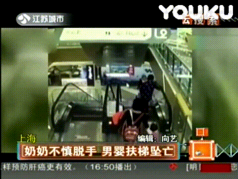 2016年11月,一个奶奶抱着4个月大的孙子乘坐扶梯。一个没站稳,孩子就从扶梯外侧滑了出去,当场身亡。