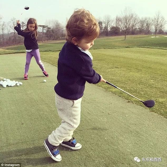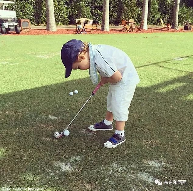 有钱人除了学音乐,体育是必选项。特朗普最爱高尔夫,小的们路还没站稳就开始挥拍了。