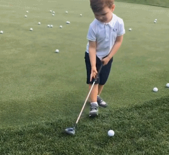 这是约瑟夫2岁时跌跌撞撞打高尔夫的视频,伊万卡的画外音一直在给他打鸡血:太棒了,再来一次!