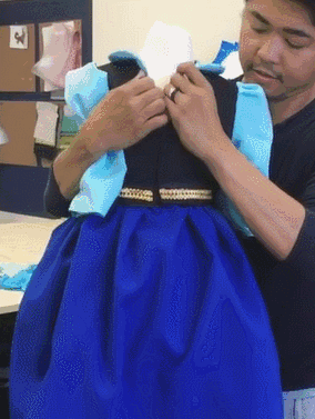 在得知女儿希望有一件可以穿去迪士尼玩的漂亮衣服后,这位服装设计师直接动手给她做了一件。