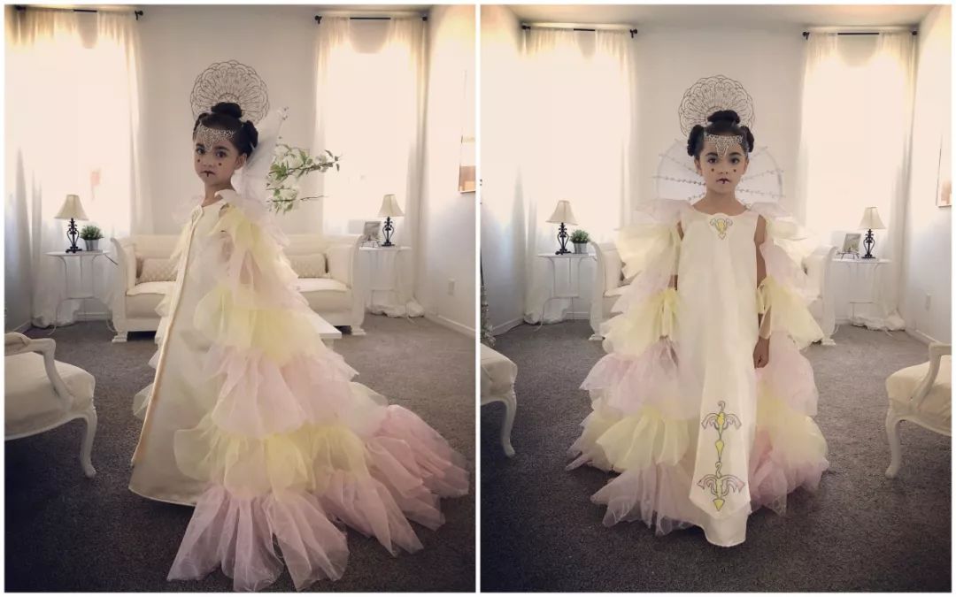爸爸给她做的这身霸气战袍,可是《星球大战》里纳布星女王帕德梅同款。