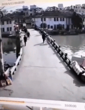 3月13日上午,一女一男并排在桥上走着,突然男子一个箭步冲上前,使劲将女子抱起,摔入河中。