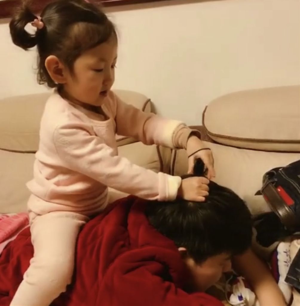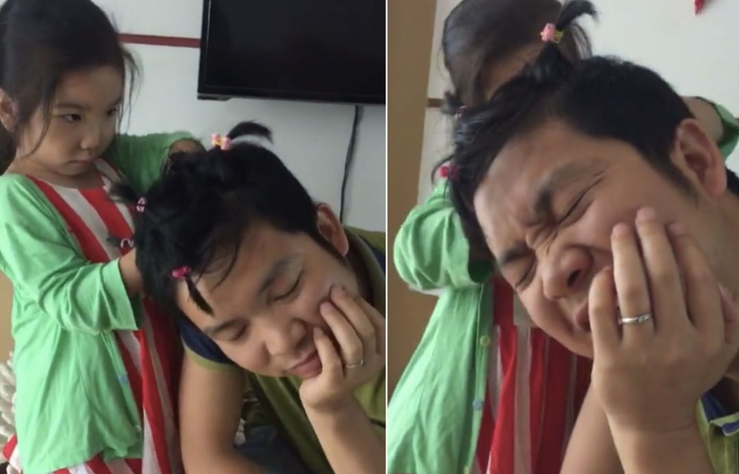 当然了,宠女儿也是要付出一些代价的。像这位老爸,就承受着这个年纪不该承受的疼痛。