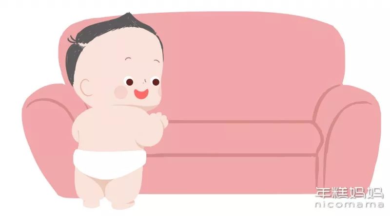 为了能站起来,宝宝可是拼尽了全力。他们会伸直双手撑住地面,用双腿将屁股高高撑起,然后伸直腰,站起来。或者借助外力,比如家里的柜子、书架,甚至是重心不稳的椅子。所以妈妈们最好把宝宝能够到的东西都固定好,或者贴上防撞贴。