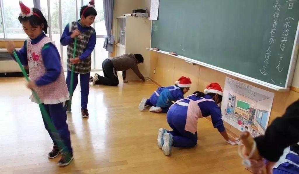 日本孩子从幼儿园起,就要带两块抹布上学,一块用来擦桌子,一块用来擦地板,学期末还得为地板打蜡、刷洗风扇;五年级开始,每年都上50-60个小时的“家庭课”,包括学习烹饪、缝纫、洗衣服等。