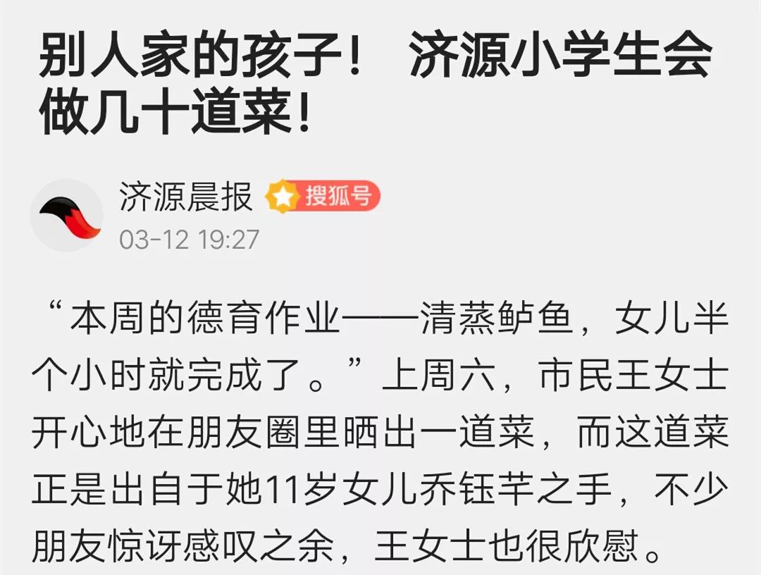 前几天,在网上看到一个奇葩作业,厦门有个学校,从几年前开始,给三年级以上的小学生布置周末学炒菜的家庭作业。